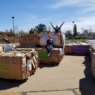 We announced our Sticker Design Contest Winners at our next anniversary celebration event, the Recycling Bale Display in the University of Wisconsin Stevens Point Sundial. This project was extra fun because we brought together a couple of our favorite recycling industry colleagues in Central Wisconsin; UW-Stevens Point Office of Sustainability and Campus Recycling as well as the Portage County Solid Waste Department. We created the number “40” out of cardboard and aluminum recycling bales that were generated from the UWSP campus recycling. Made out of almost 40 bales, the display included educational signs that shared information on UWSP campus recycling, local recycling tips, and state/national/global recycling facts & figures. The display was on location for 3 weeks from mid-April to early May. On Earth Day, Recycling Connections held a small outdoor reception where we were able to physically receive our certificate of commendation from Rep. Shankland, participate in other campus Earth Day events, talk with people about our display, and not only hand out our new stickers but also present prizes to our sticker design winners.