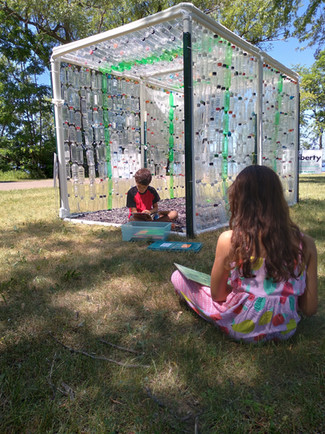 Having a presence in our community has been important to Recycling Connections. We have loved having an office space off Main Street and feeling connected to downtown Stevens Point. We knew we wanted to do something where we could have some presence and share a bit about what we do. To achieve this, we created an educational kiosk, made from nearly 1,000 recyclable bottles, that is on display from Memorial Day through Labor Day along the Green Circle Trail between Pfiffner and Bukolt Park. The kiosk not only promotes reuse by its construction design, but it also shares educational tips and information. We included signs, interactive games, and childrens books for visitors to enjoy. We received shredded rubber tires from Liberty Tire Recycling for the floor of our kiosk which is another great example of a reuse material, and also makes for an inviting place to hang out. On site is an “activity box” that challenges visitors with what plastics are “To Bin or Not To Bin” in your curbside recycling bin. We encouraged people to take the additional challenge of signing on to Plastic Free July to reduce their use of single-use plastics. If you haven’t visited the kiosk yet, stop by any time before Labor Day. Learn more about the kiosk in the story captured by news.